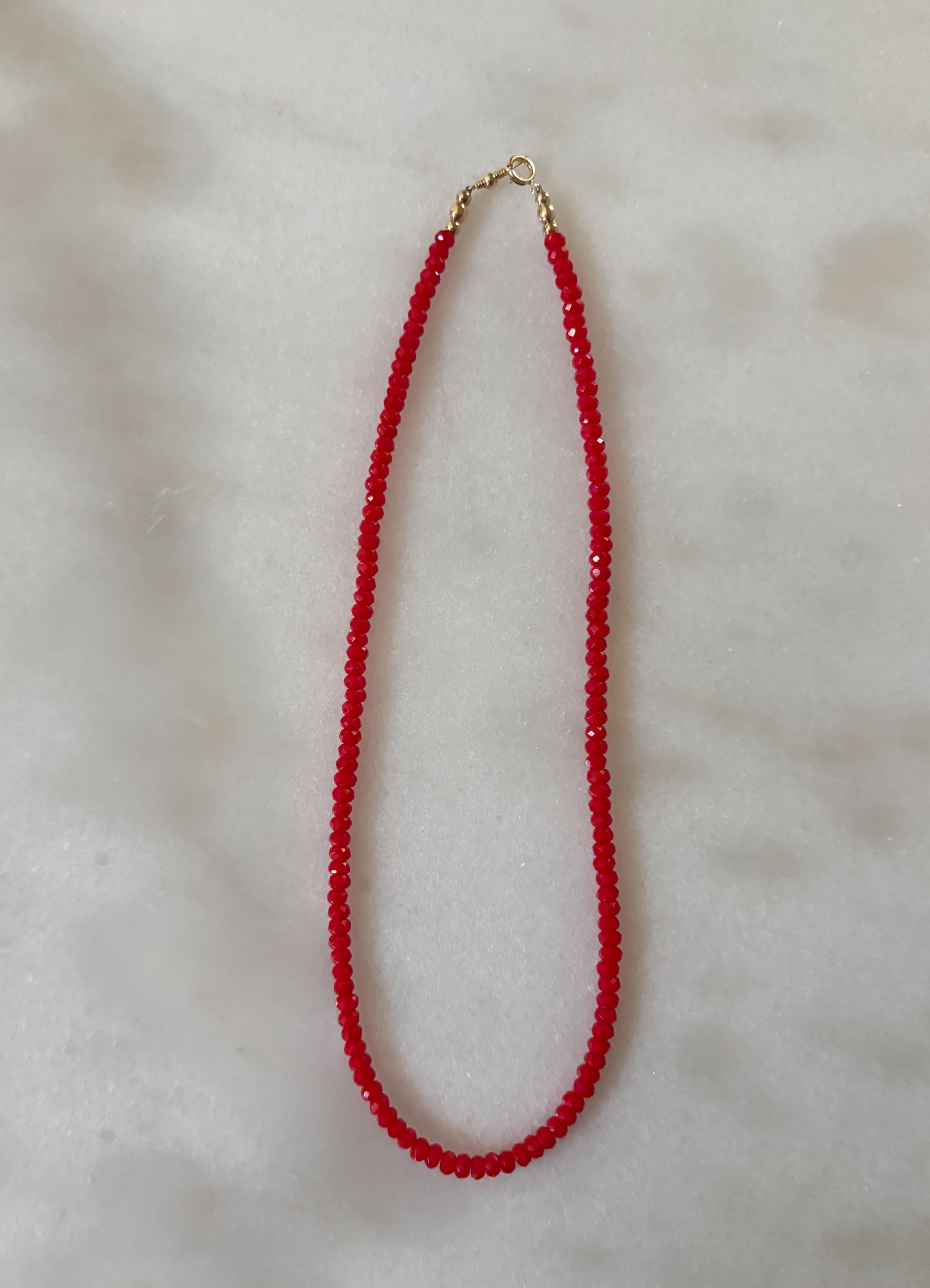 Tiny Red Jade layering necklace with 14k gold filled hardware