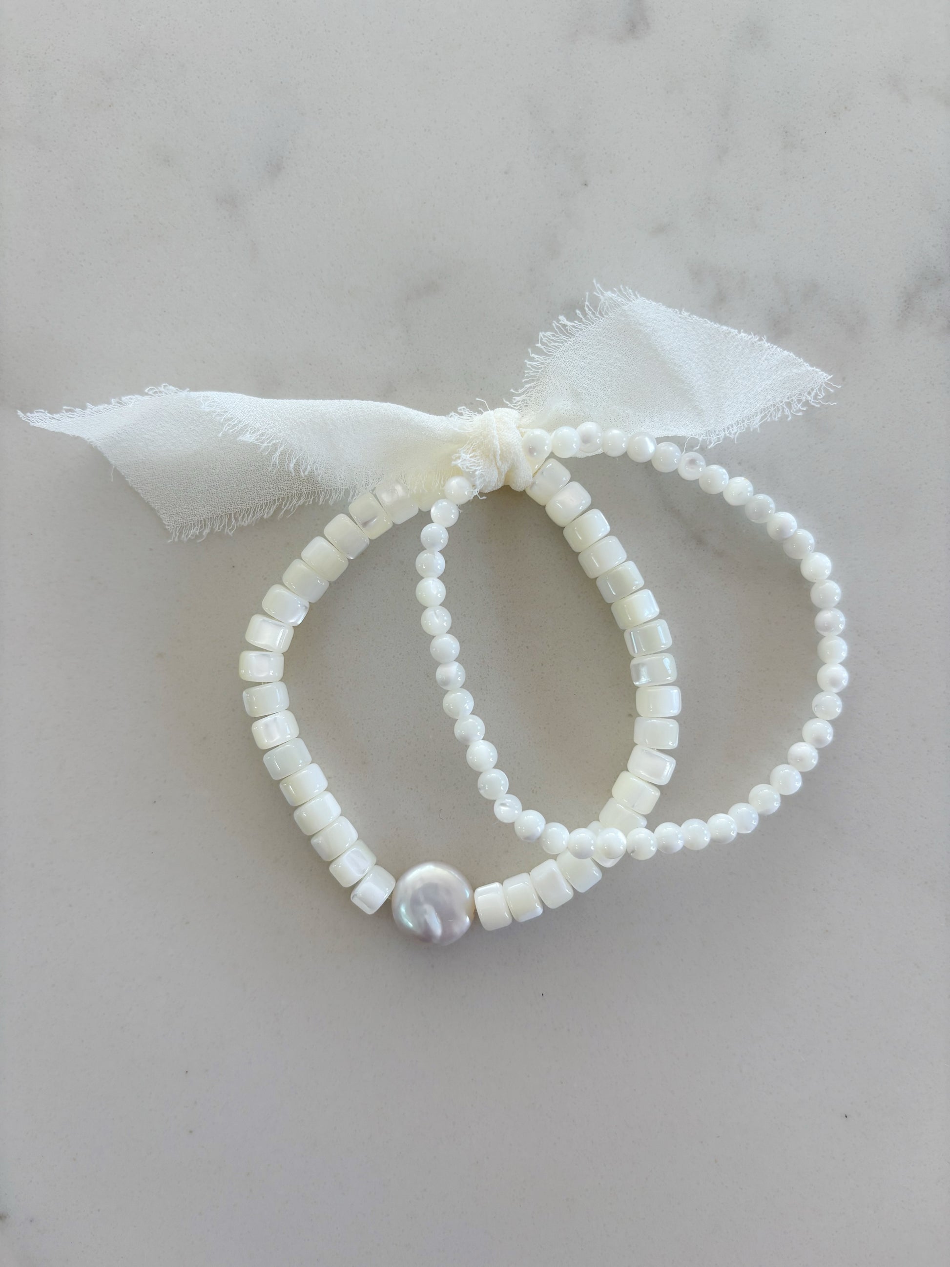 set of 2 white stretch bracelets