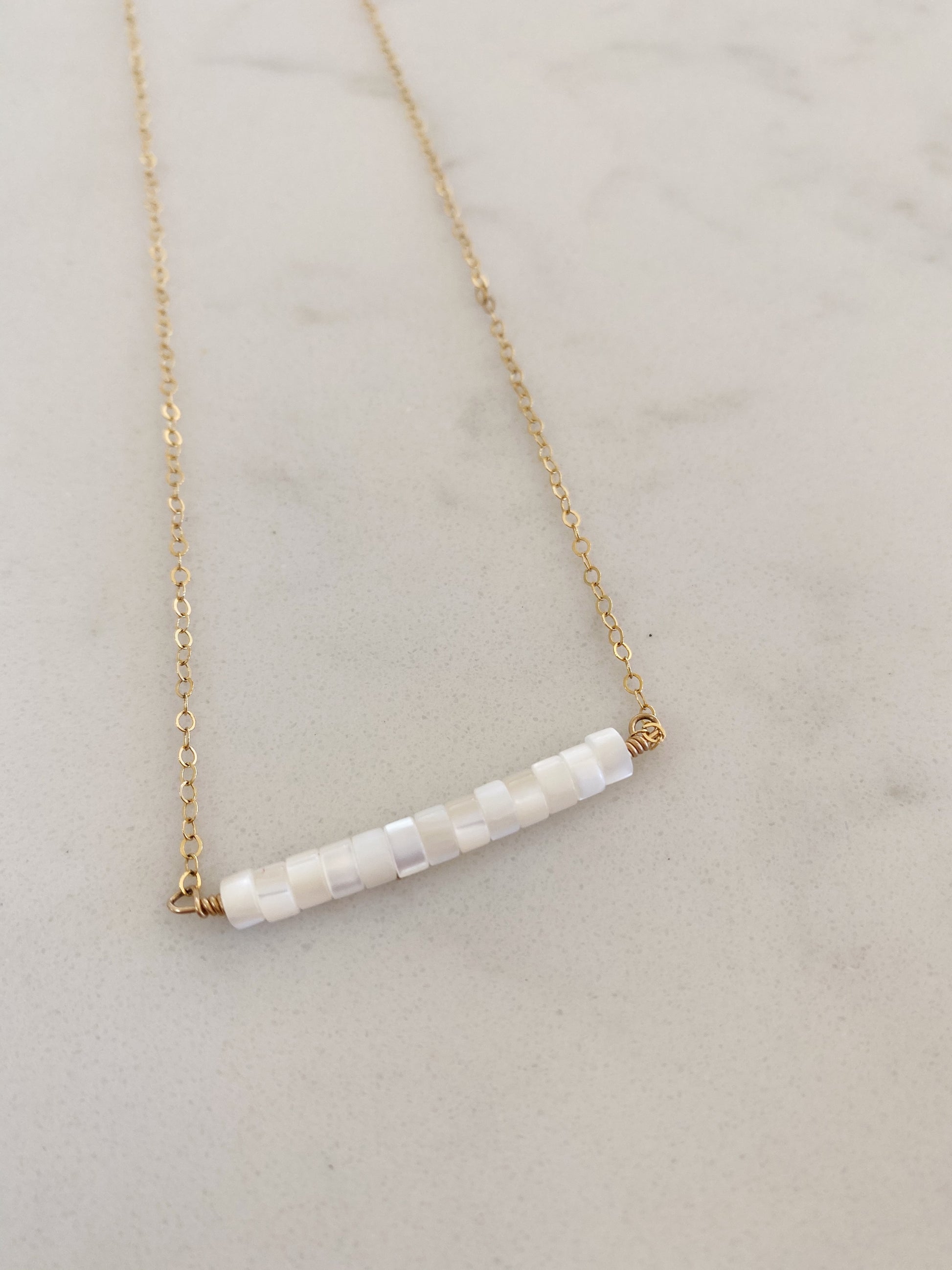 14k gold filled or sterling silver necklace with white mother of pearl Shell beads